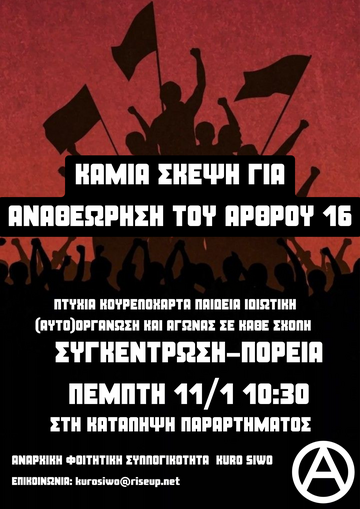 ΚΑΤΩ ΤΑ ΧΕΡΙΑ ΑΠΟ ΤΟ ΑΡΘΡΟ 16- ΟΧΙ ΣΤΑ ΙΔΙΩΤΙΚΑ ΠΑΝΕΠΙΣΤΗΜΙΑ. Κάτω το νέο αντιδραστικό νομοσχέδιο και όλοι οι αντι-εκπαιδευτικοί νόμοι.