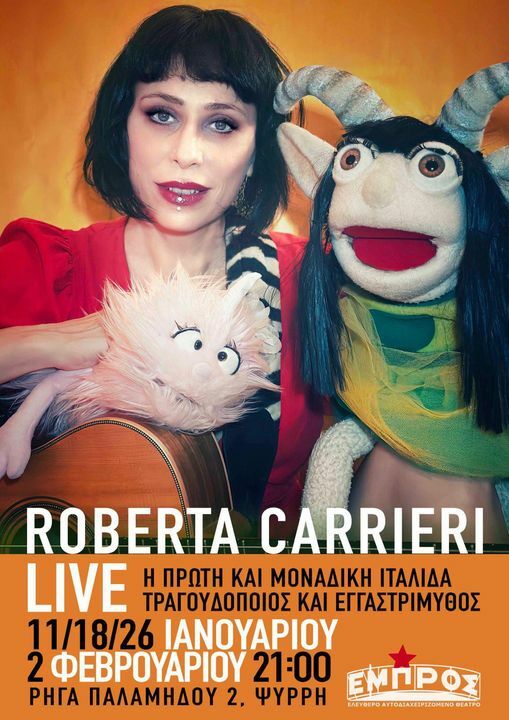 Η ROBERTA CARRIERI - η πρώτη και μοναδική Ιταλίδα τραγουδίστρια-τραγουδοποιός, ηθοποιός και εγγαστρίμυθος - παρουσιάζει την συναυλία-παράσταση "Ciao Ciao φίλε μου"