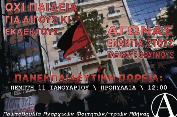 Κάλεσμα στην πανεκπαιδευτική πορεία την Πέμπτη 11/1, στις 12, στα Προπύλαια