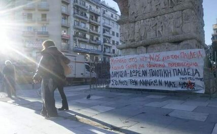 Μέσα στον Γενάρη αναμένεται η κατάθεση του νέου νομοσχεδίου του Υπουργείου Παιδείας για την ίδρυση μη κρατικών - ιδιωτικών πανεπιστημίων, με τίτλο «Ελεύθερο Πανεπιστήμιο». Δεν πρόκειται για έναν ακόμη νόμο ή μια αόριστη «εκπαιδευτική αναδιάρθρωση», αλλά για τομή στις αντι-εκπαιδευτικές επιθέσεις της κυβέρνησης. Βάζουν ταφόπλακα στις σπουδές και το μέλλον μας. Αποτελεί ΚΡΑΥΓΑΛΕΑ ΠΑΡΑΒΙΑΣΗ ΤΟΥ ΣΥΝΤΑΓΜΑΤΟΣ, καθώς το Άρθρο 16 απαγορεύει ΡΗΤΑ τη σύσταση ανώτατων σχολών από ιδιώτες. Το «Ελεύθερο Πανεπιστήμιο» δεν θα σημάνει απλά μια παράκαμψη αλλά μια ντε φάκτο κατάργηση του άρθρου 16. Επικαλούμενοι τις "νέες συνθήκες" και τις "οδηγίες" της ΕΕ, θέλουν να τελειώνουν, όπως δηλώνουν προκλητικά, "με το κρατικό μονοπώλιο στην εκπαίδευση" και με "αναχρονιστικούς θεσμούς". Έτσι βλέπει η κυβέρνηση τα δικαιώματα και τις κατακτήσεις μας! Στόχος της είναι να προχωρήσει, αν μπορέσει, και στην οριστική συνταγματική αναθεώρηση/κατάργηση του άρ. 16.