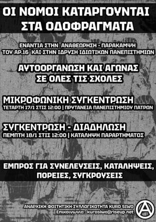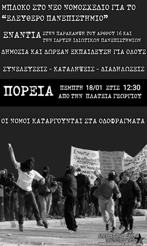 ΝΑ ΜΠΛΟΚΑΡΟΥΜΕ ΤΗΝ ΨΗΦΙΣΗ ΤΟΥ ΝΕΟΥ ΝΟΜΟΣΧΕΔΙΟΥ ΓΙΑ ΤΑ ΙΔΙΩΤΙΚΑ ΠΑΝΕΠΙΣΤΗΜΙΑ|ΠΟΡΕΙΑ ΠΕΜΠΤΗ 18/01 12:30Μ ΠΛ. ΓΕΩΡΓΙΟΥ