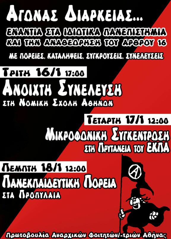 Ανοιχτή συνέλευση της Πρωτοβουλίας Αναρχικών Φοιτητών/-τριών Αθήνας την Τρίτη 16/01 στις 17:00 στη Νομική Σχολή Αθηνών (τρίτος όροφος αίθουσα 8)