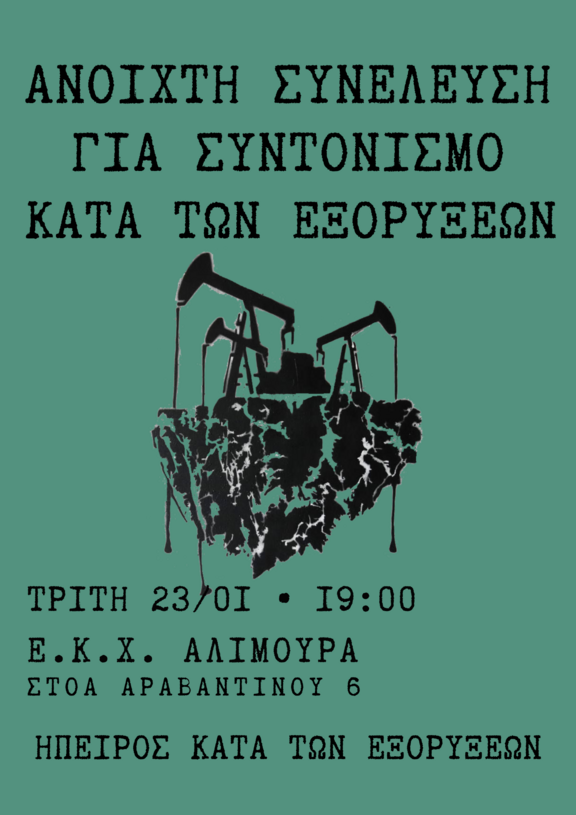 Ανοιχτή συνέλευση για συντονισμό ενάντια στις εξορύξεις