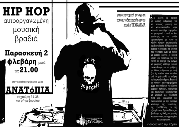 …μετά τις 21.00 για την οικονομική ενίσχυση του αυτοδιαχειριζόμενου studio ΤΕΧΝΑΣΜΑ στον αυτοδιαχειριζόμενο χώρο ΑΝΑΤόΠΙΑ από την ομάδα αυτοοργανωμένης έκφρασης τέχνασμα.