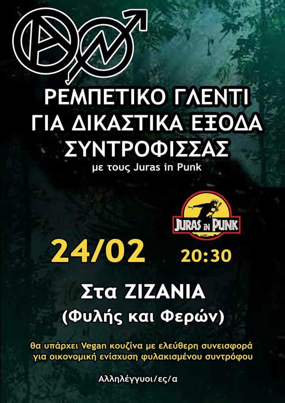 Ρεμπέτικο γλέντι με τους Juras in punk για δικαστικά έξοδα συντρόφισσας από την τελευταία απεργία πείνας του αγωνιστή Δ.Κουφοντίνα το Σάββατο 24/02 στο κατειλλημένο στέκι Ζιζάνια.