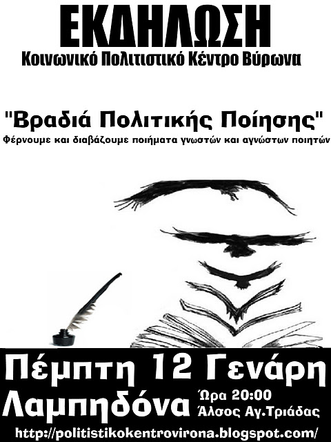 Πέμπτη 12/1: 8μμ Βραδιά Πολιτικής Ποίησης