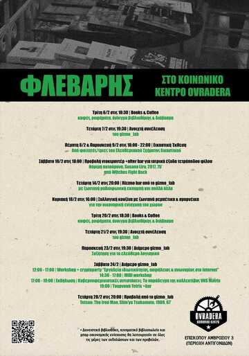 ⬤ To gizmo_lab είναι ένα hacklab που συναντίεται σε ανοιχτές συνελεύσεις στο κ.κ.Ovradera. Με στόχο την απομυστικοποίηση των γκατζετιών και των ψηφιακών συστημάτων γύρω μας, την κοινωνικοποίηση ζητημάτων γύρω από αυτά, το fun και τα συλλογικά μας (καμμένα και μη) πρότζεκτ, προσπαθούμε να δημιουργούμε, να ανακαλύπτουμε και να συναντιόμαστε, μέσα από οριζόντιες και αντιιεραρχικές διαδικασίες, μακριά από λογικές βετεράνων προγραμματιστάδων και ειδικών.
