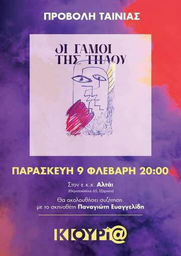 Μετα την προβολή θα ακολουθήσει συζήτηση με τον σκηνοθέτη Παναγιώτη Ευαγγελίδη για την ισότητα στον πολιτικό γάμο και τους αγώνες της ΛΟΑΤΚΙ κοινότητας.