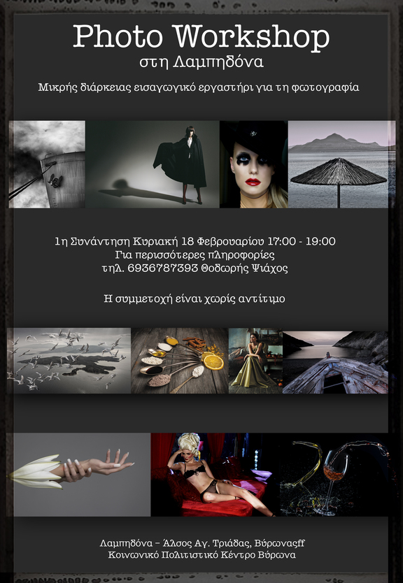 Μικρής διάρκειας εισαγωγικό εργαστήρι για τη φωτογραφία. Ενότητες:
