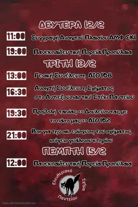 Bar οικονομικής ενίσχυσης του Ελευθεριακού Σχήματος Παντείου