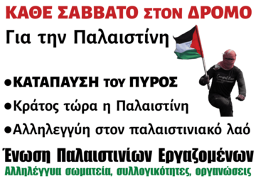 Συνεχίζουμε τον αγώνα. Για να σταματήσουμε αυτό το έγκλημα, αυτή την ΕΘΝΟΚΑΘΑΡΣΗ και ΓΕΝΟΚΤΟΝΙΑ των Παλαιστινίων. Ενώνουμε τη φωνή μας με τις κινητοποιήσεις σε όλο τον κόσμο:
