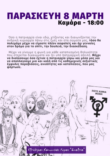 Όλοι/ες στη διαδήλωση την Παρασκευή 08/03 στις 18:00 στη Καμάρα