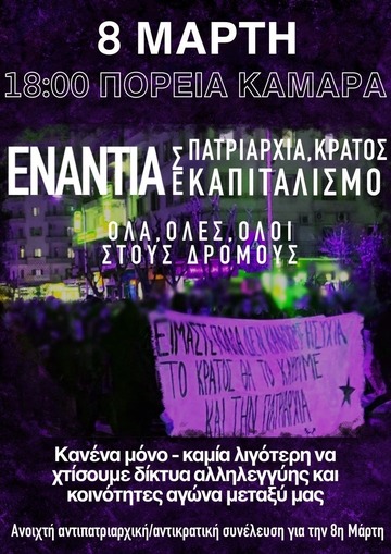 Κάλεσμα σε πορεία : Παρασκευή 8 Μαρτίου 18:00