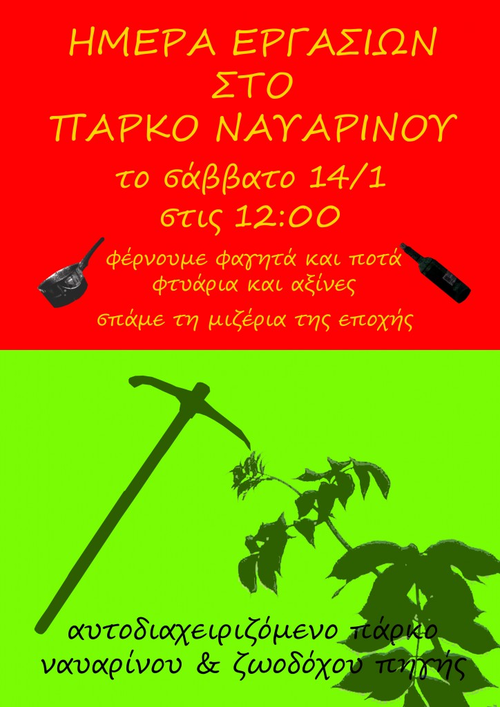 ΗΜΕΡΑ ΕΡΓΑΣΙΩΝ ΣΤΟ ΠΑΡΚΟ ΝΑΥΑΡΙΝΟΥ,ΣΑΒΒΑΤΟ 14 ΓΕΝΑΡΗ,ΑΠΟ ΤΙΣ 12 ΤΟ ΜΕΣΗΜΕΡΙ!