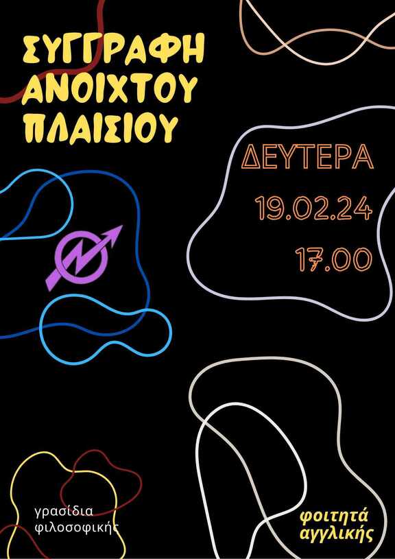 ΚΑΛΕΣΜΑ ΓΙΑ ΣΥΓΓΡΑΦΗ ΑΝΟΙΧΤΟΥ ΠΛΑΙΣΙΟΥ ΤΗ ΔΕΥΤΕΡΑ 19/02 ΣΤΙΣ 17:00 ΣΤΑ ΓΡΑΣΙΔΙΑ ΦΙΛΟΣΟΦΙΚΗΣ, ενόψει της Γενικής Συνέλευσης του συλλόγου την Τρίτη