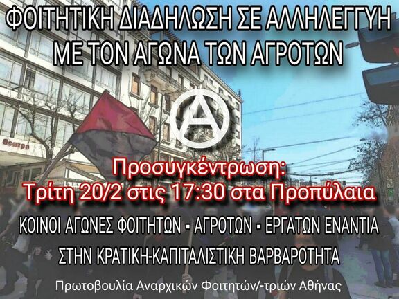 Κάλεσμα στην Φοιτητική Διαδήλωση σε αλληλεγγύη με τον αγώνα των αγροτών