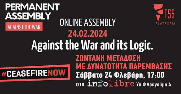 Στις 24 Φλεβάρη συμπληρώνονται δύο χρόνια από την εισβολή του ρωσικού στρατού στην Ουκρανία. Καθώς ο πόλεμος επεκτείνεται (τόσο σε νέα μέτωπα όσο και με την αύξηση του μιλιταρισμού, του αυταρχισμού, της πατριαρχίας και των εθνικισμών στα «μετόπισθεν») και η σφαγή στη Γάζα συνεχίζεται, η Διαρκής Συνέλευση Ενάντια στον Πόλεμο / Permanent Assembly Against the War (PAAW) διοργανώνει μια διαδικτυακή εκδήλωση/συνέλευση σε αναζήτηση συλλογικών κινηματικών στρατηγικών.