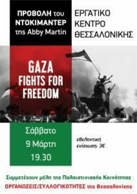 Προβολή του Ντοκιμαντέρ της Abby Martin: Gaza fights for freedom, Εργατικό Κέντρο Θεσσαλονίκης, Σάββατο 09/03, 19:30