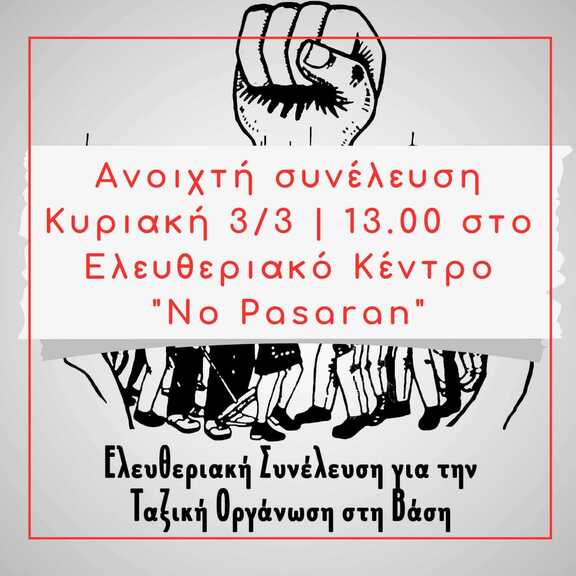 Ανοιχτή συνέλευση της ΕΣΤΟΒ την Κυριακή 3/3 στις 13.00 στο Ελευθεριακό Κέντρο: "No Pasarán"