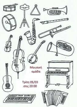 Η μουσική ομάδα ξεκινάει εκ νέου τις συναντήσεις της, την Τρίτη 5 Μάρτη στις 20.00 και κάθε επόμενη Τρίτη! Η ομάδα είναι ανοιχτή σε όλες και όλους όσες/ους θέλουν να παίξουν και να μοιραστούν τη μουσική, ανεξαρτήτως επιπέδου!