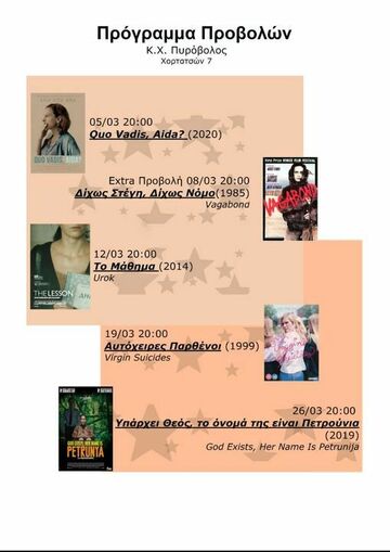 Αύριο 5/3 στις 20:00 ξεκινούν οι εβδομαδιαίες προβολές ταινιών στον Κ.Χ. Πυρόβολο!