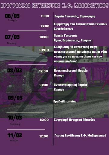 Πριν δύο εβδομάδες πραγματοποιήθηκε η δημόσια διαβούλευση του νομοσχεδίου που έρχεται να θεσμοθετήσει ιδιωτικά πανεπιστήμια και στη χώρα μας, παρακάμπτοντας το άρθρο 16. Ήδη εδώ και λίγες μέρες το νομοσχέδιο έχει κατατεθεί στο κοινοβούλιο και αναμένεται να ψηφιστεί στις 8 Μάρτη, πράγμα που οδηγεί στην κλιμάκωση των πρακτικών καταστολής και κατάπνιξης των φοιτητικών αγώνων. Απέναντι σε αυτό το νομοσχέδιο, χιλιάδες φοιτητ(ρι)ες σε όλη τη χώρα εμμένουν σε μαζικές γενικές συνελεύσεις, καταλήψεις, πορείες. Το κράτος και οι διοικήσεις πολλών τμημάτων απάντησαν σε αυτή την κοινωνική κίνηση στα πανεπιστήμια με τηλεξεταστικες, προσπαθώντας να αποδυναμώσουν το φοιτητικό κίνημα. Ακόμα, απαντούν με φυσική καταστολή, όπως έγινε στη νομική Κομοτηνής με συλλήψεις και ξυλοδαρμούς φοιτητών αγωνιστών, στην πρυτανεία ΑΠΘ και ΕΜΠ, αλλά και σε πορείες στην πόλη μας και στην Πάτρα με συλλήψεις αγωνιστριών και συμφοιτητών μας. Η καταστολή αυτή δεν μπορεί να μας αφήνει αδιάφορους/ες/α, όταν μάλιστα οι δυνάμεις ασφαλείας εισέβαλαν και στη δική μας σχολή σε μία προσπάθεια εκκένωσης της κατάληψης.