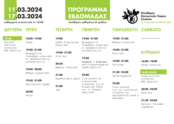 Εβδομαδιαίο Πρόγραμμα ΕΚΧ Σχολείο