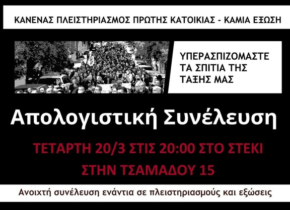 Απολογιστική Συνέλευση της Ανοιχτής Συνέλευσης ενάντια σε πλειστηριασμούς & εξώσεις