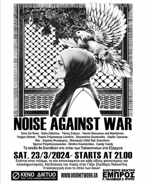 ΚΕΝΟ ΔΙΚΤΥΟ- NOISE AGAINST WAR #2 Αντιπολεμικό φεστιβάλ avant-garde, πειραματικής και θορυβικής μουσικής αφιερωμένο στα θύματα της καταστροφής της Παλαιστίνης που συντελείται αυτή τη στιγμή.