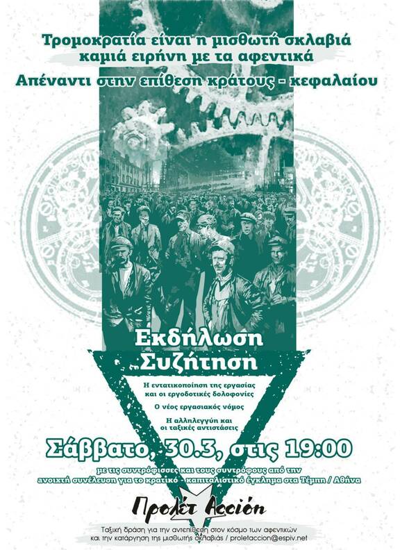ταξική δραση για την αντεπίθεση στον κόσμο των αφεντικών και την κατάργηση της μισθωτής σκλαβιάς. proletaccion@espiv.net