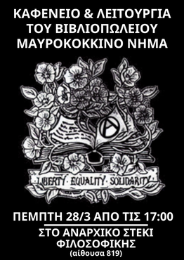 Πέμπτη 28/3 από τις 17:00 στο Αναρχικό Στέκι Φιλοσοφικής (8ος όροφος - αίθουσα 819)