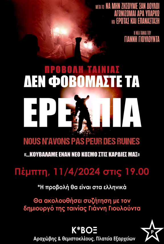Προβολή ταινίας: Δε φοβομαστε τα ερειπια
