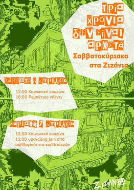 Σας προσκαλούμε να έρθετε στα Ζιζάνια να μαγειρέψουμε και να φάμε όλα μαζί το φαγητό που έχουμε μαζέψει απότην λαϊκή! Τα Ζιζάνια είναι ένας χώρος ανοικτός σε άτομα κάθεπροέλευσης, εισοδήματος, γλώσσας, φύλου, σεξουαλικότητας και ηλικίας. Τα λέμε εκει.