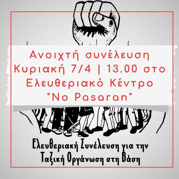 Ανοιχτή Συνέλευση της ΕΣΤΟΒ στο Ελευθεριακό Κέντρο: "No Pasarán" την Κυριακή 7 Απριλίου στη 13:00.