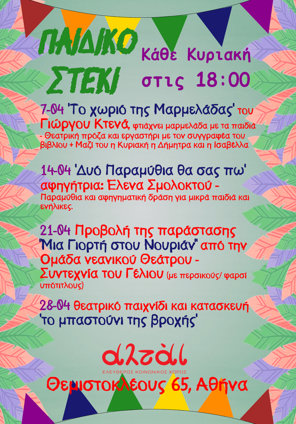 Παιδικό στέκι : κάθε Κυριακή στις 18.00 ! Πρόγραμμα Απριλίου