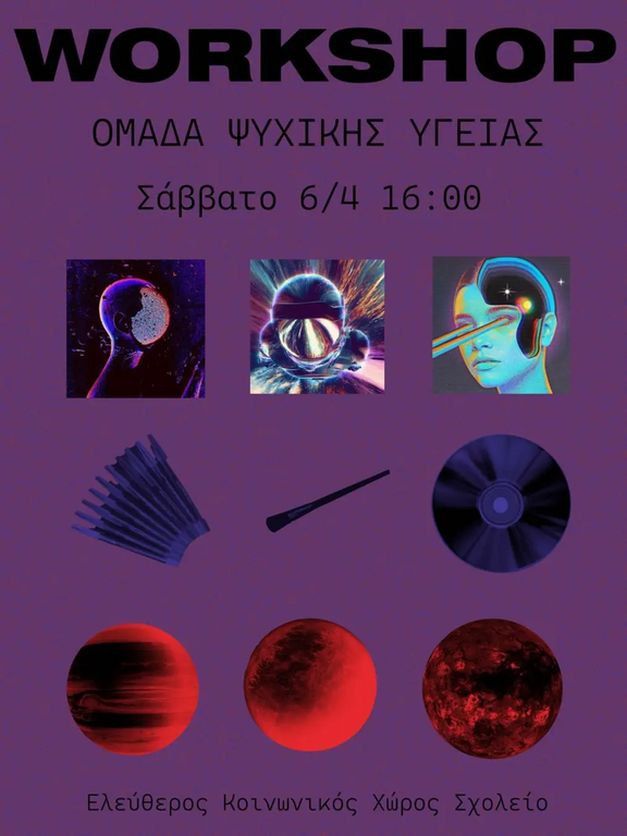 Υπάρχουν στιγμές που όλα μας επιθυμούμε να κλείσουμε τα μάτια και να ταξιδέψουμε σε έναν δικό μας κόσμο, σε έναν δικό μας ιδανικό πλανήτη. Τι χρώμα έχει, τι σχήμα φαντάζεσαι, ποιες κοινωνικές δομές υπερτερούν και τι ηθικές αξίες ξεπροβάλουν? Αυτές τις σκέψεις και ακόμη περισσότερες θα δοκιμάσουμε να χρωματίσουμε στο εργαστήρι της νεοσύστατης ομάδας ψυχικής υγείας του Ελεύθερου Κοινωνικού Χώρου Σχολείο το Σάββατο 6 Απριλίου, 4 με 7 στην αίθουσα χορού στον επάνω όροφο. Ένα αυτοτελές εργαστήριο ανοιχτό προς όλα όσα επιθυμούν να γεννήσουν, να ανακαλύψουν ή και να εμπλουτίσουν τον ιδανικό τους κόσμο, φέρνοντας τον εντονότερα στην συνειδητότητα τους για κάποιες ώρες. Κοσμικά και απόκοσμα πλάσματα είστε όλα σας ευπρόσδεκτα σε μια συλλογική προσπάθεια σμίλευσης των πλανητών μας αλλά και συνάντησης αυτών στο σήμερα.