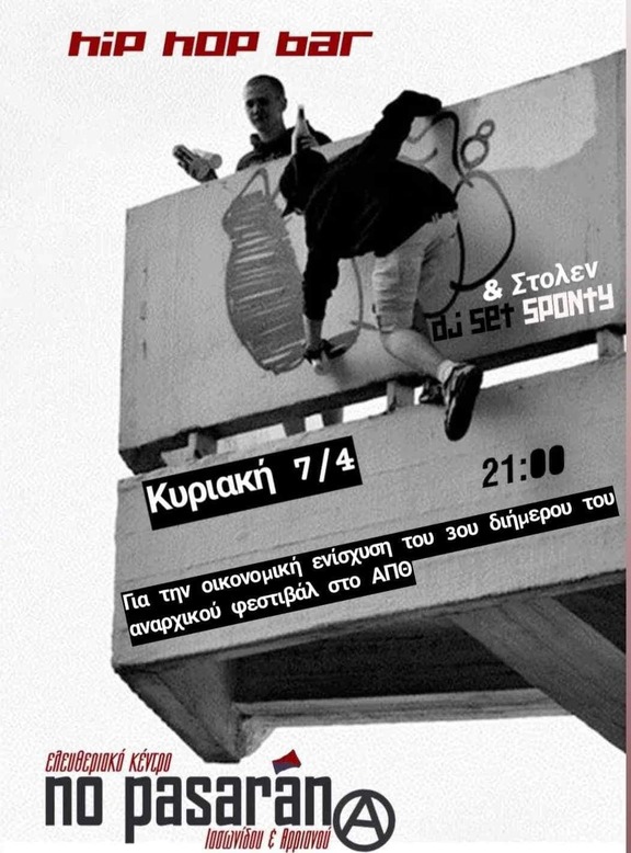 Κυριακή 7/04 στις 21:00 στο Ελευθεριακό Κέντρο: "No Pasarán" για την οικονομική ενίσχυση του 3ου διήμερου αναρχικού φεστιβάλ στο ΑΠΘ
