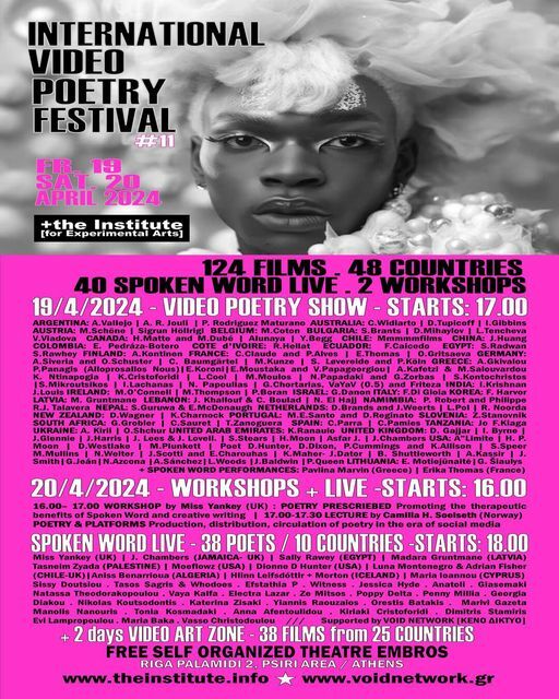 Το Διεθνές Φεστιβάλ Βίντεο-Ποίησης γιορτάζει έντεκα χρόνια δημιουργικής συνεργασίας με περισσότερους από 2000 καλλιτέχνες από 85 χώρες συνολικά, έναν κόσμο ποιητικών οραμάτων προς όφελος της ανθρωπότητας. Ποίηση, κινηματογράφος, μουσική και προφορικός λόγος ενώνονται για να επικοινωνήσουν την έμπνευση, τα όνειρα, τις ιδέες και τις ελπίδες όλων μας. Σας καλωσορίζουμε σε αυτόν τον μαγικό κόσμο.