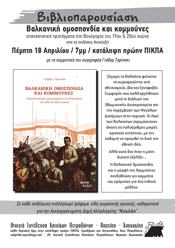 Βιβλιοπαρουσίαση «Βαλκανική ομοσπονδία και κομμούνες: επαναστατικά προτάγματα στη Βουλγαρία του 19ου & 20ού αιώνα», από τις εκδόσεις Αυτολεξεί.