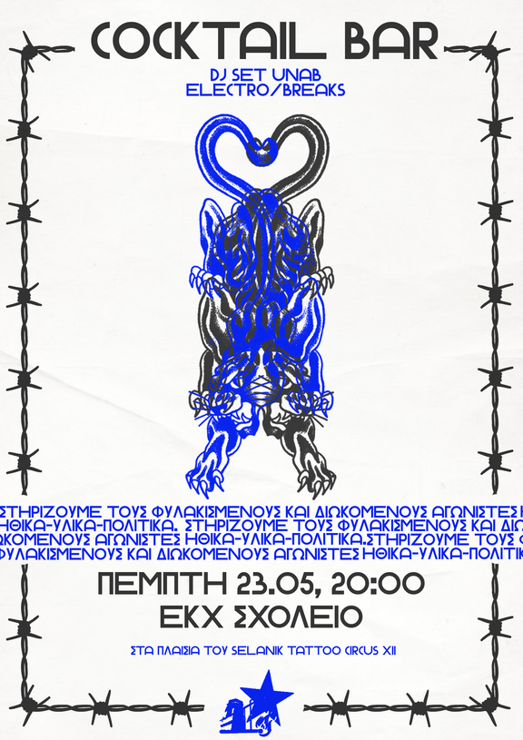Cocktail bar και dj set οικονομικής ενίσχυσης του Ταμείου αλληλεγγύης φυλακισμένων και διωκόμενων αγωνιστ(ρι)ών στα πλαίσια του Selanik Tattoo Circus vol XII