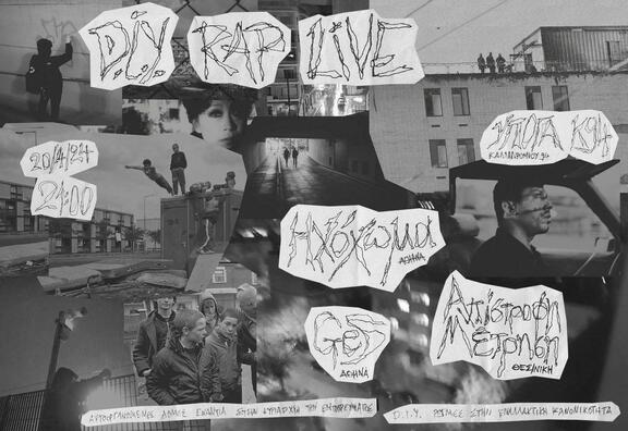 Το Σάββατο 20/04 στήνουμε μαζί με Ηχόχωμα και GeS από Αθήνα και Αντίστροφη Μέτρηση από Θεσ/νίκη μια αυτοοργανωμένη ραπ συναυλία. Στόχος μας είναι τα λάιβ που κάνουμε, να φέρουν μέσα τους τα προτάγματα της αυτοοργανωμένης έκφρασης.