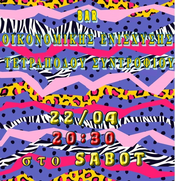 Bar οικονομικής ενίσχυσης στο Sabot για τα ιατρικά έξοδα του γατιού Τσίτσου, που