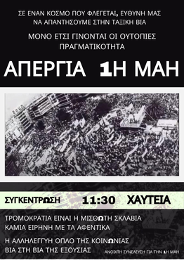 Εργαζόμενοι/ες, άνεργοι/ες τιμάμε τους νεκρούς του Σικάγου και της Θεσσαλονίκης, με διεθνιστική αλληλεγγύη και αυτοοργάνωση.