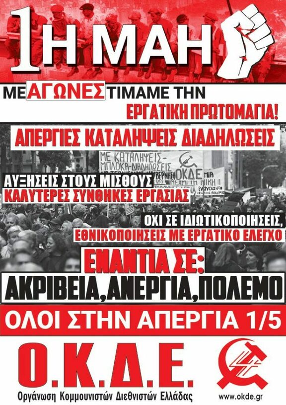 Να πάρουμε τη σκυτάλη από τους μεγαλειώδεις αγώνες φοιτητών - εργαζομένων σε ΗΠΑ και Ευρώπη ενάντια στη γενοκτονία του Παλαιστινιακού λαού και τις μεγάλες απεργίες για αυξήσεις μισθών και εργατικά δικαιώματα. Με μαζικούς κι ανυποχώρητους αγώνες, με ενότητα στη δράση και ένα συγκεκριμένο σχέδιο για τους αγώνες. 138 χρόνια από την Πρωτομαγιά των εργατών του Σικάγο, την ημέρα του παγκόσμιου προλεταριάτου το μήνυμά της είναι πιο επίκαιρο από ποτέ. Παρά την υπονόμευσή της από την αστική τάξη, τη συνδικαλιστική γραφειοκρατία και κάθε αιδούς ρεφορμιστές και ρεβιζιονιστές, η Πρωτομαγιά είναι μέρα της εργατικής τάξης, όλων των καταπιεσμένων και εκμεταλλευόμενων και τα διδάγματά της μας επιτρέπουν να ανοίξουμε ένα άλλο δρόμο για μια κοινωνία ελεύθερη, δίκαιη, δημοκρατική, Σοσιαλιστική. Με τη σημαία της Εργατικής Πρωτομαγιάς να νικήσουμε την εγκληματική κυβέρνηση Μητσοτάκη και όλους φανερούς και κρυφούς εχθρούς των εργαζομένων, των φτωχών λαϊκών στρωμάτων και της νεολαίας.