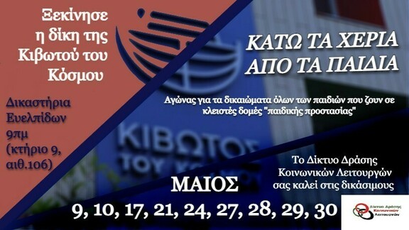 Στις δικάσιμους για την ΚΙΒΩΤΟ ΤΟΥ ΚΌΣΜΟΥ που θα λάβουν χώρα στο Θ. Τριμελες Πλη/κειο ΑΘΗΝΩΝ ΠΡΩΗΝ ΣΧΟΛΗ ΕΥΕΛΠΙΔΩΝ, Αθήνα, Αίθουσα προκάτ 4, ώρα 11.00 στις 10 Μαϊου