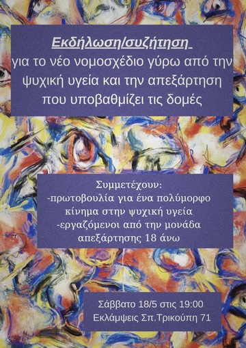 Εκδηλωση-συζητηση για το νέο νομοσχέδιο γύρω από την ψυχική υγεία