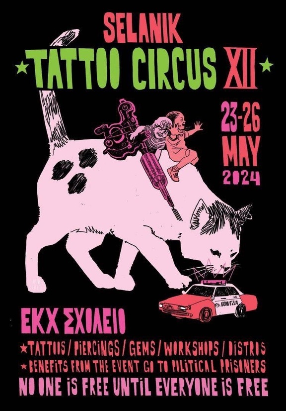 Το Tattoo Circus είναι ένα αυτοοργανωμένο φεστιβάλ, το οποίο ξεκίνησε το 2007 στη Ρώμη από μία πρωτοβουλία συντροφιών και έφτασε στη Θεσσαλονίκη το 2008, όπου πραγματοποιήθηκε στην κατάληψη του Ορφανοτροφείου. Έκτοτε, το φεστιβάλ και εκδηλώσεις του έχουν φιλοξενηθεί σε διάφορους χώρους όπως η κατάληψη Terra Incognita, το Στέκι στο Βιολογικό, το ΕΚΧ Σχολείο και το Κοινωνικό Κέντρο Αγώνα Τούμπας. Το Tattoo Circus έχει ταξιδέψει σε αρκετές πόλεις της Ευρώπης (Βαρκελώνη, Βερολίνο, Λονδίνο, Μαδρίτη, Βασιλεία κ.α.) και της Ελλάδας (Αθήνα, Θεσσαλονίκη, Λάρισα, Ηράκλειο) στηρίζοντας οικονομικά και ηθικά συντρόφους και συντρόφισσες που βρίσκονται εντός των τειχών.