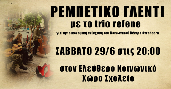 Ρεμπέτικο γλέντι για την οικονομική ενίσχυση του Κοινωνικου Κέντρου Ovradera