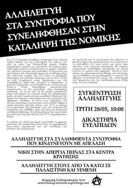 Συγκέντρωση αλληλεγγύης για τα 28 συλληφθέντα