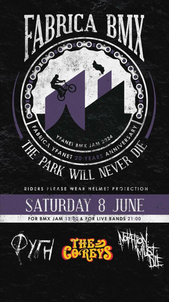 Μαζί με τα γενέθλια των 20χρονων της κατάληψης έρχεται το Σάββατο 8 Ιούνη και το bmx jam! Μετά το jam θα ακολουθήσει live με τους Φυγή , The Coreys και Notation must die ! Ελάτε να χαρούμε την νέα κατασκευή που έφτιαξε η κοινότητα του bmx και έπειτα να γουστάρουμε το live με τις 3 μπάντες από Θεσσαλόνικη..